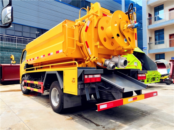 清洗部分:1.8方水箱,采用4mmQ235優(yōu)質(zhì)碳鋼板,水箱兩側(cè)消防接口進(jìn)水,工具箱一個(gè)。采用德國(guó)品浮高壓泵170升流量,24兆帕,配60米內(nèi)徑19#高壓管,10個(gè)大小不同噴頭一套, 后置式清洗卷盤(pán),帶淋管裝置(用于淋洗高壓管疏通管道過(guò)后上面殘留的污物),帶氣吹水功能(用于吹出每次高壓管工作完以后內(nèi)部殘留的水漬,防止天冷結(jié)冰影響下次使用)